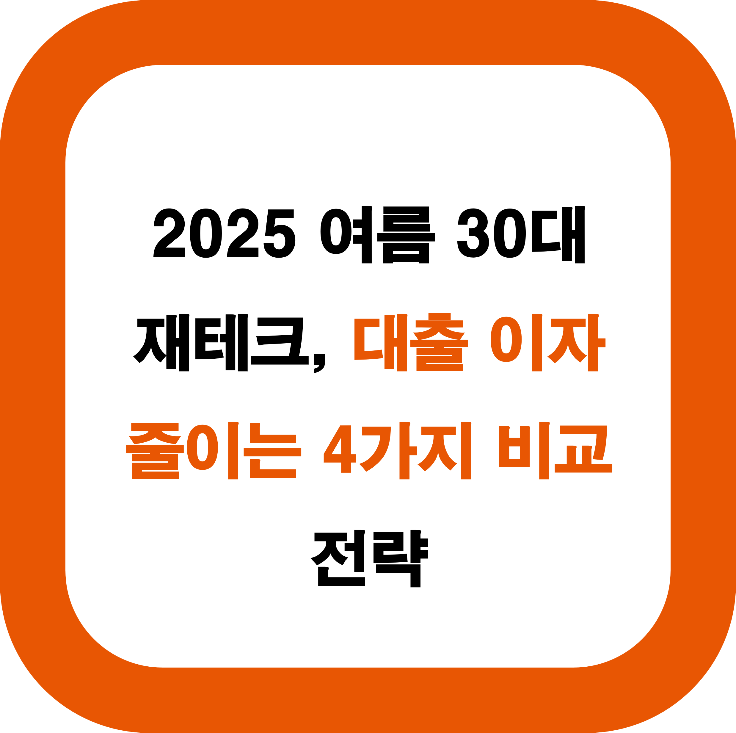 주요 키워드: 2025여름30대재테크, 대출이자절감, 금리비교전략, 은행대출비교, 변동금리vs고정금리, 대출갈아타기, 중도상환수수료, 신용대출최적화, 30대투자전략, 재테크성공사례