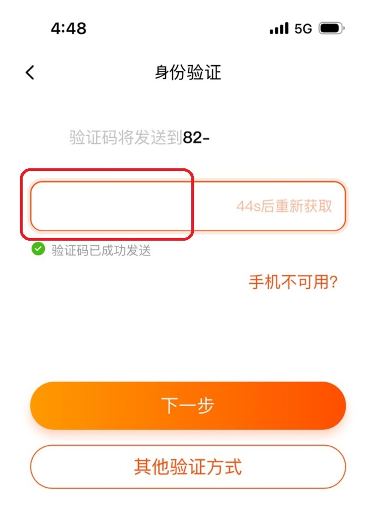 - 받은 인증번호 입력