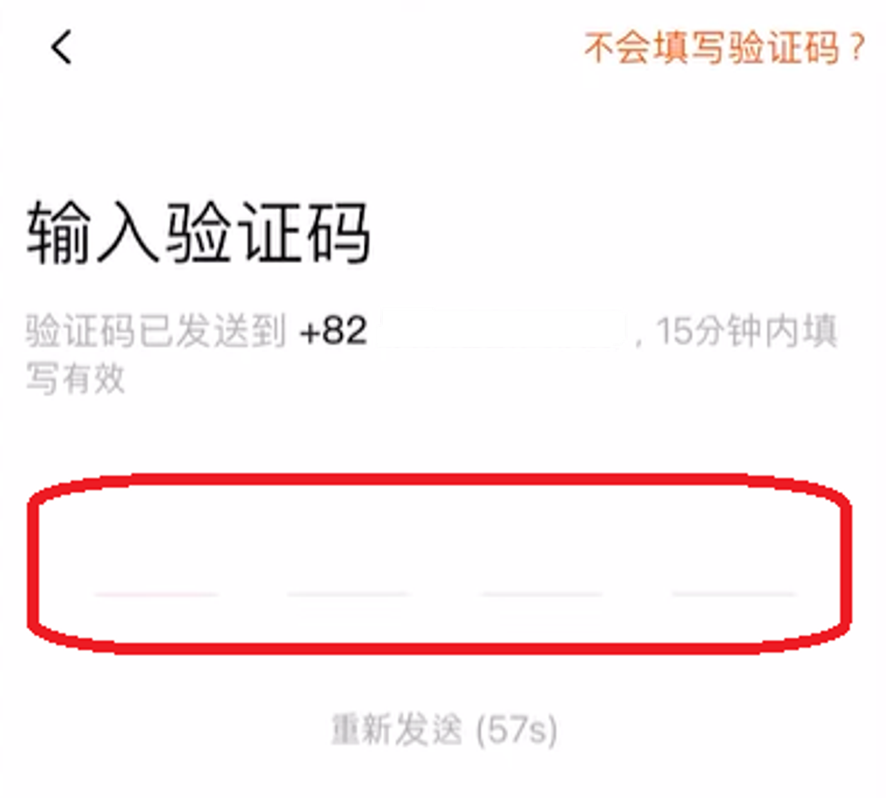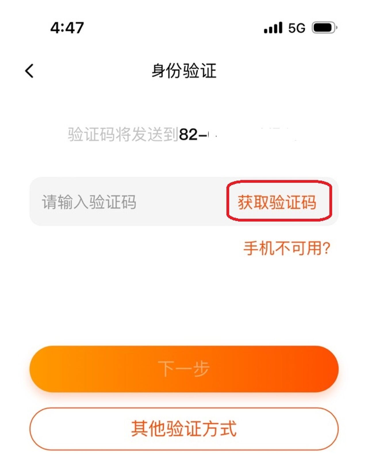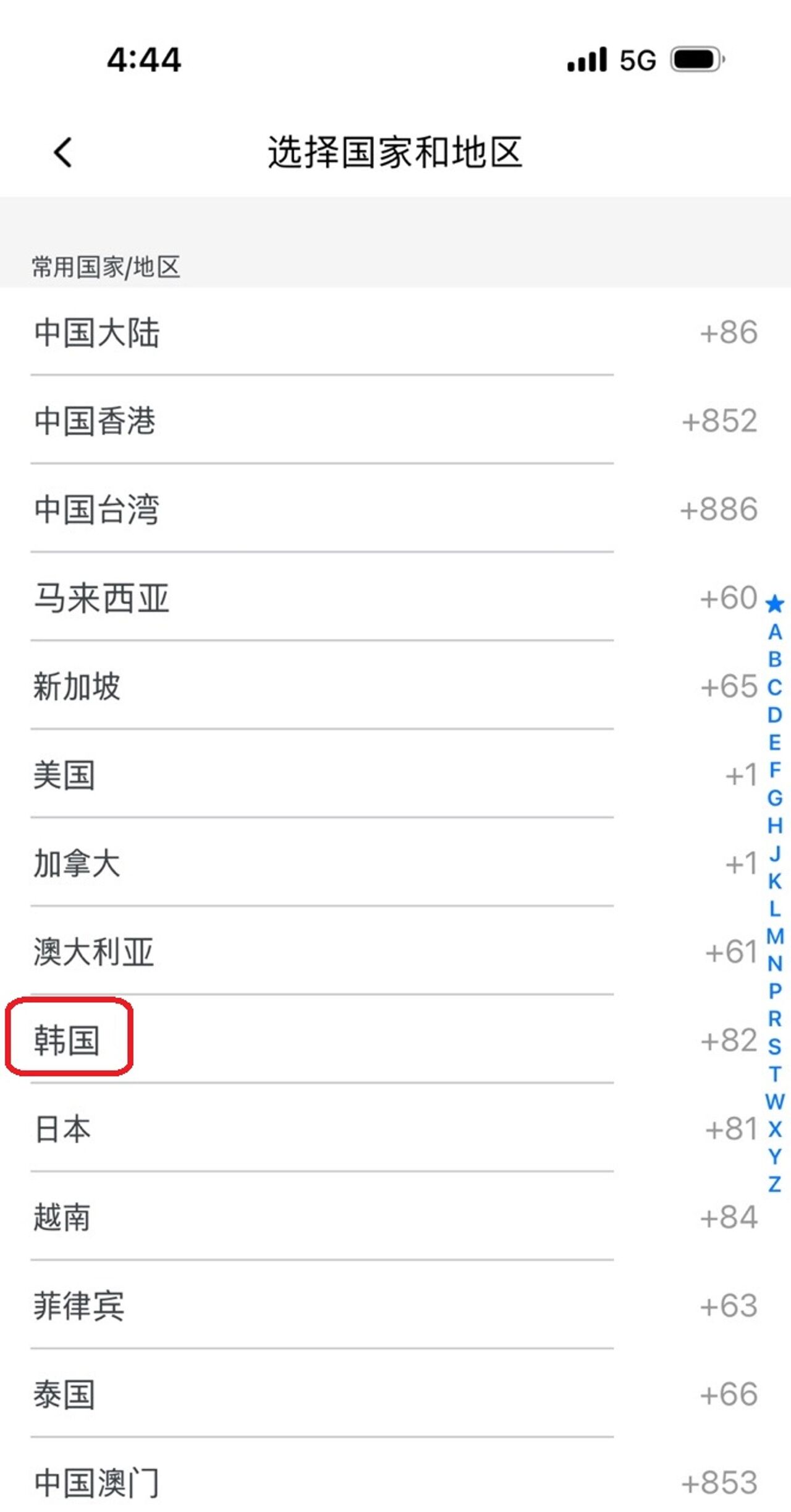 5. 국가 번호 클릭 (한국 +86 )