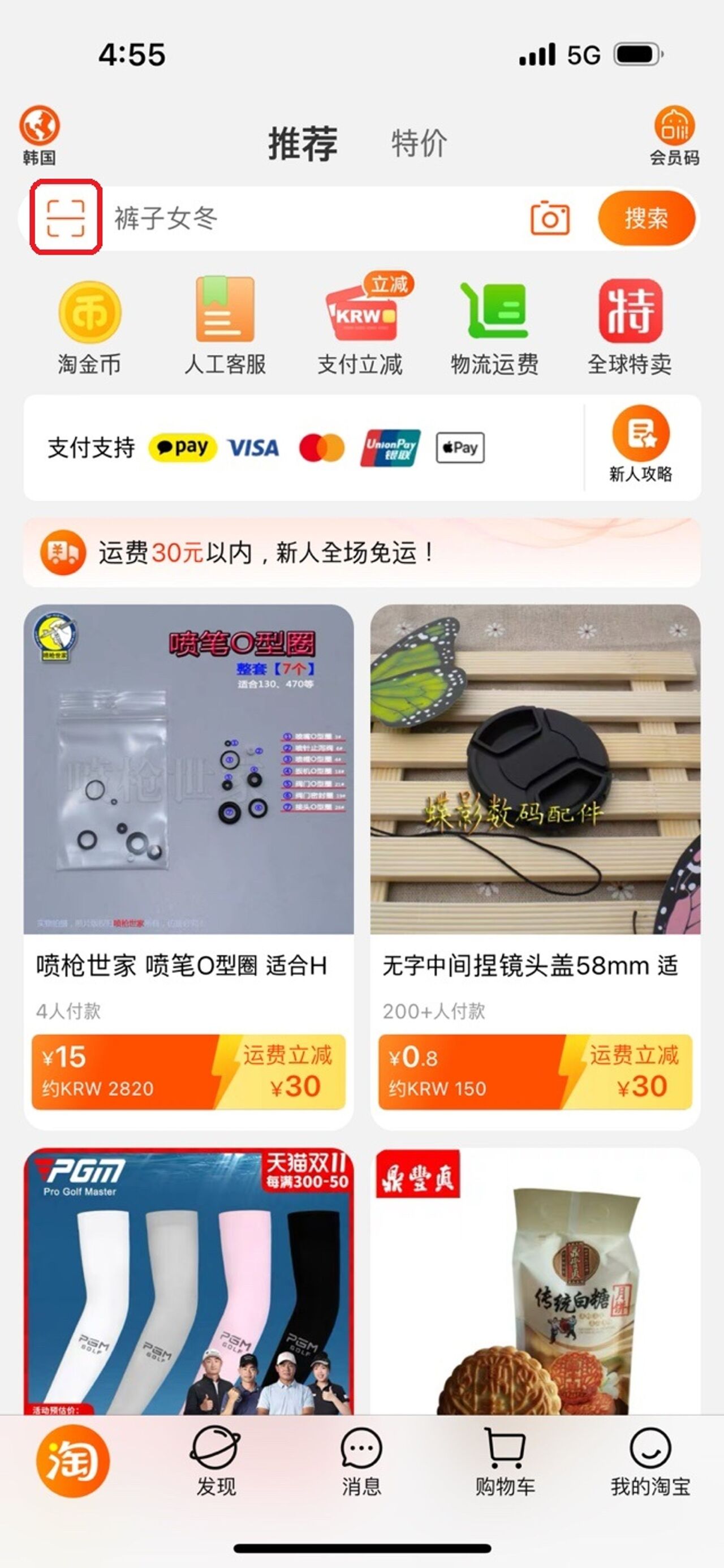 - 타오바오 스마트폰 앱의 검색창 좌측에 있는 모양 클릭