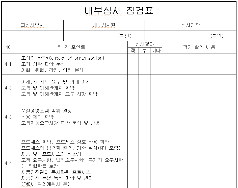 | IATF 16949:2016 품질경영시스템 심사 Check List (0) | 2024.02.28 |