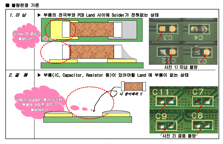- 납땜 부위에서의 결함을 확인합니다. 납땜이 제대로 되어있는지, 불량이나 빠진 납, 납땜 꽉땜 등을 검사합니다.